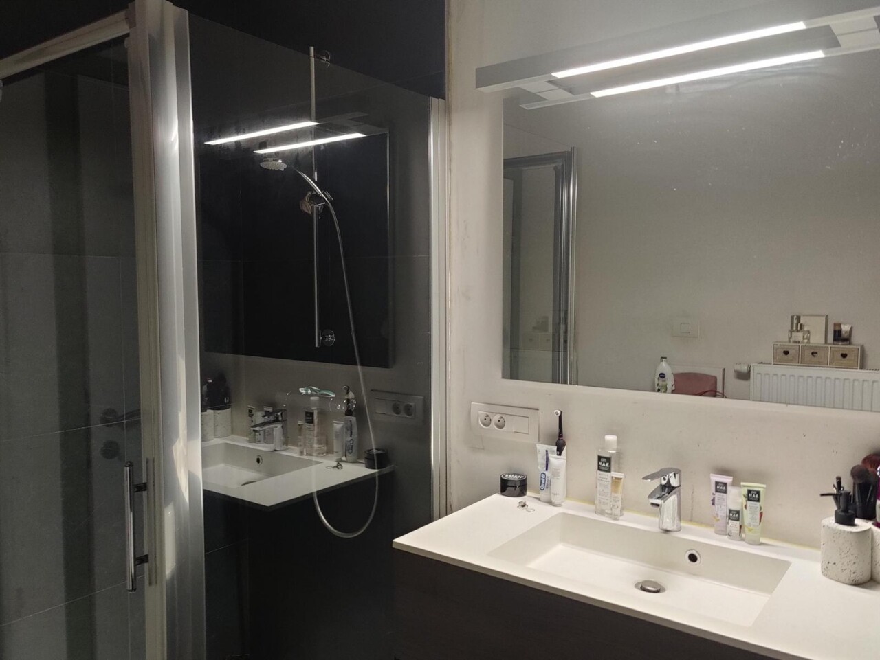 Dit prachtige appartement in het rustige Gijzegem omvat een inkomhal, een apart toilet, een lichtrijke leefruimte met zithoek, een prachtige open keuken, een praktische berging, een luxueuze badkamer met douche en bad, één masterbedroom en één kleinere kamer die dienst kan doen als bureel of extra slaapkamer.