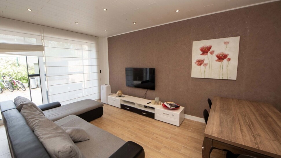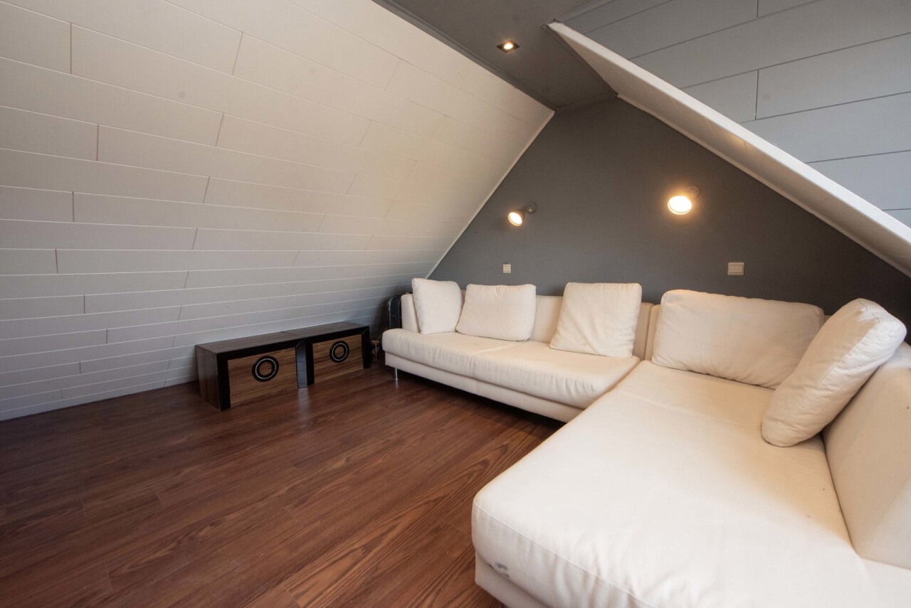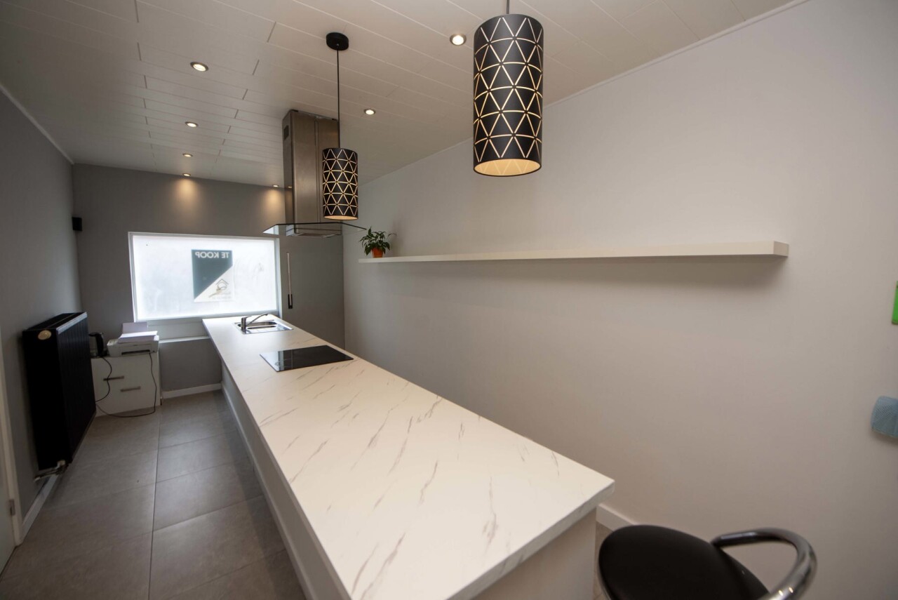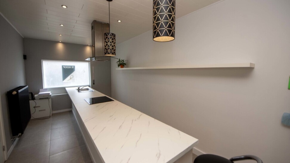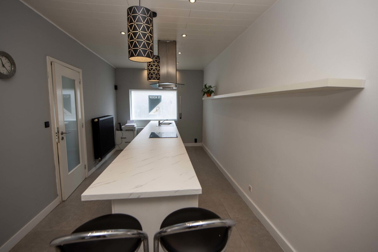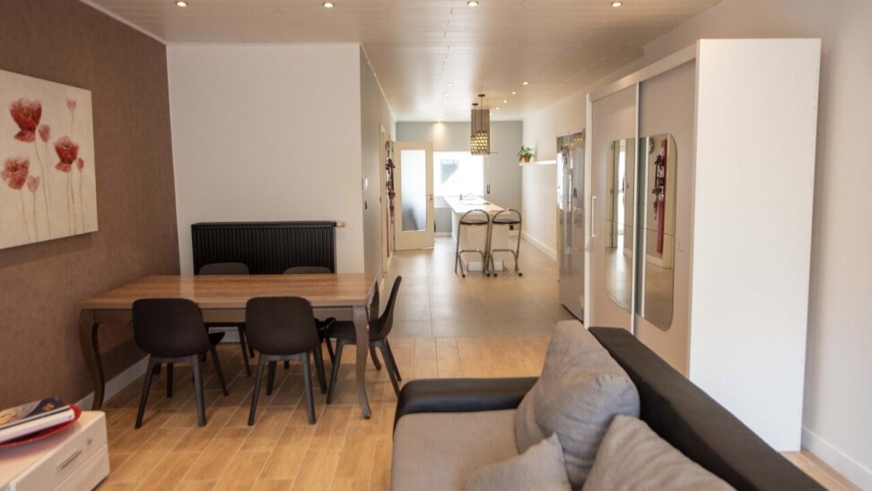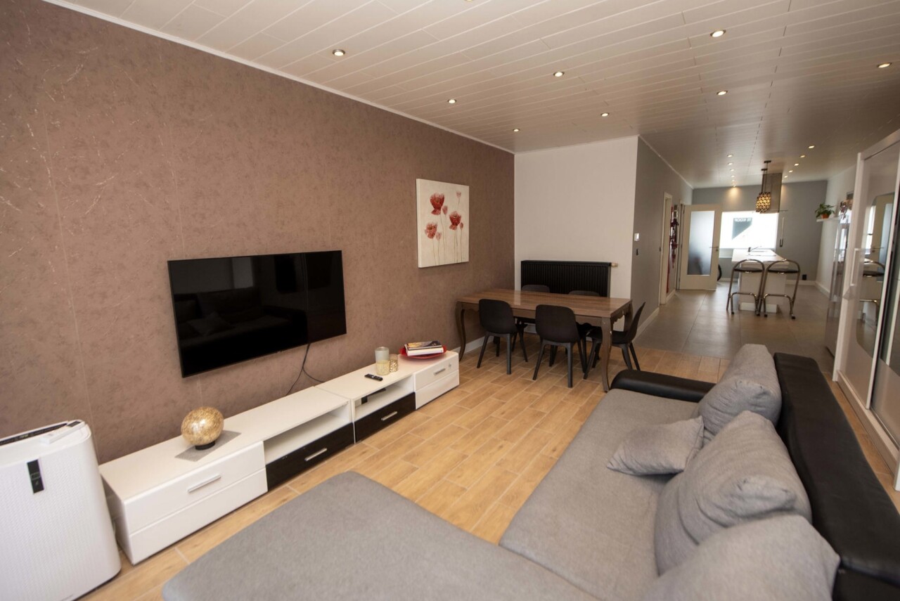Op het gelijkvloers vindt u een zithoek met een ruime moderne open eetkeuken,
