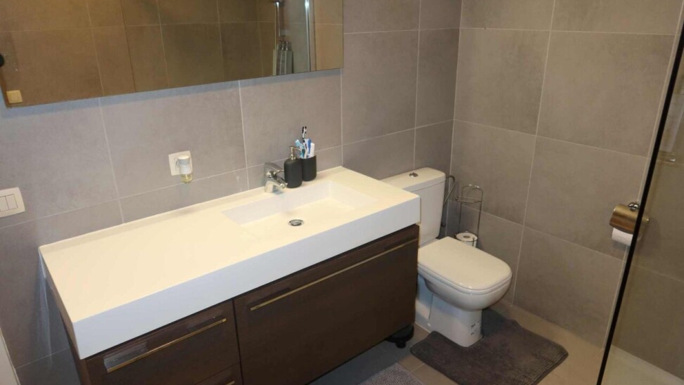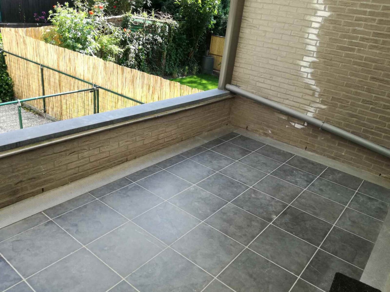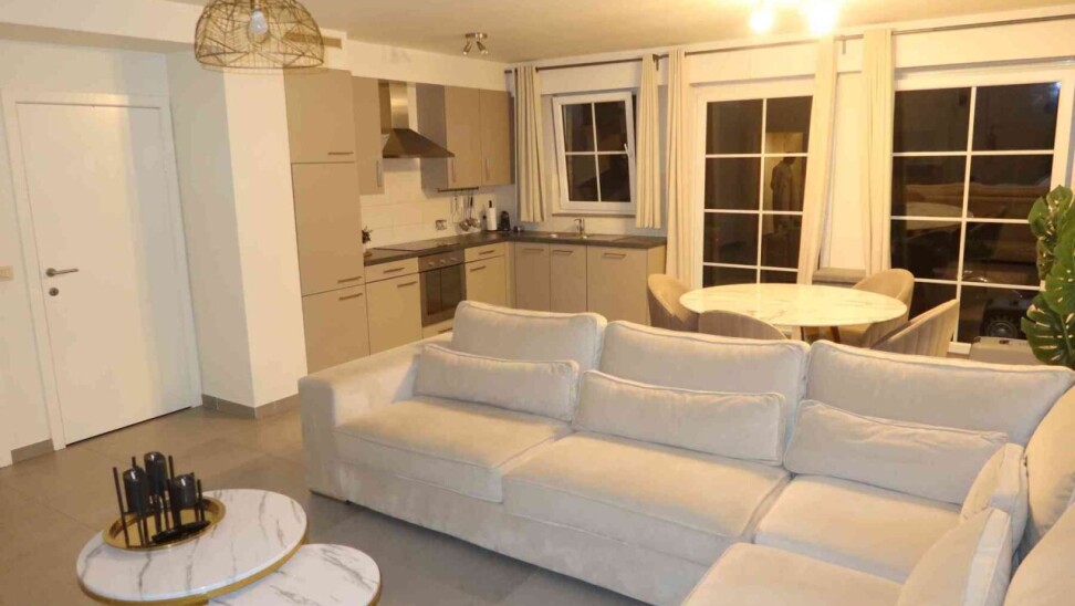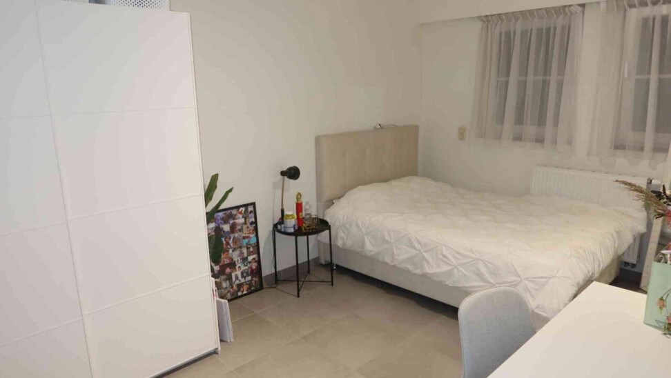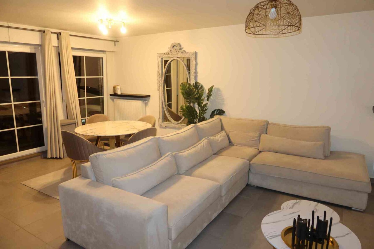 Super ruim en mooi gelijkvloers appartement bestaande uit een inkom met vestiaire kast, een apart toilet, zeer ruime living met open keuken (met alle toestellen), een erg ruime berging, 2 slaapkamers, badkamer met douche en meubel, overdekt terras (via de grote slaapkamer) en gemeenschappelijke fietsenberging.