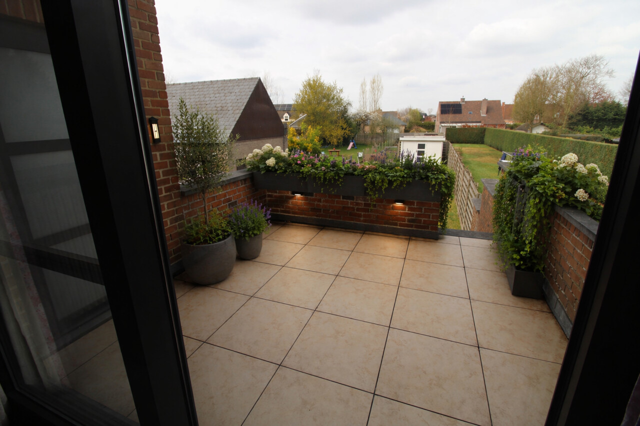Op de eerste verdieping vindt U een mooie heldere leefruimte, een recente moderne ingerichte keuken, een bureau/slaapkmer en een mooi terras met zicht op de tuin.