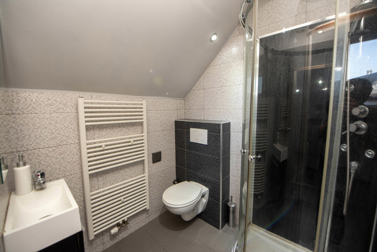 Op de 1ste verdieping vindt u twee grote slaapkamers en op de 2de verdieping treft u nog een grote zolderkamer met badkamer (douche, lavabo en toilet).