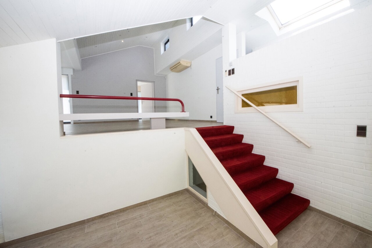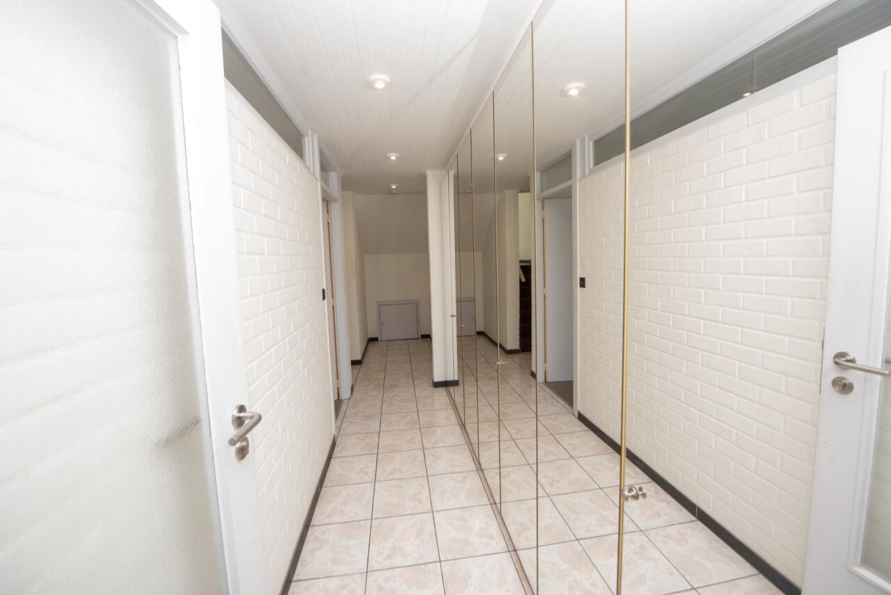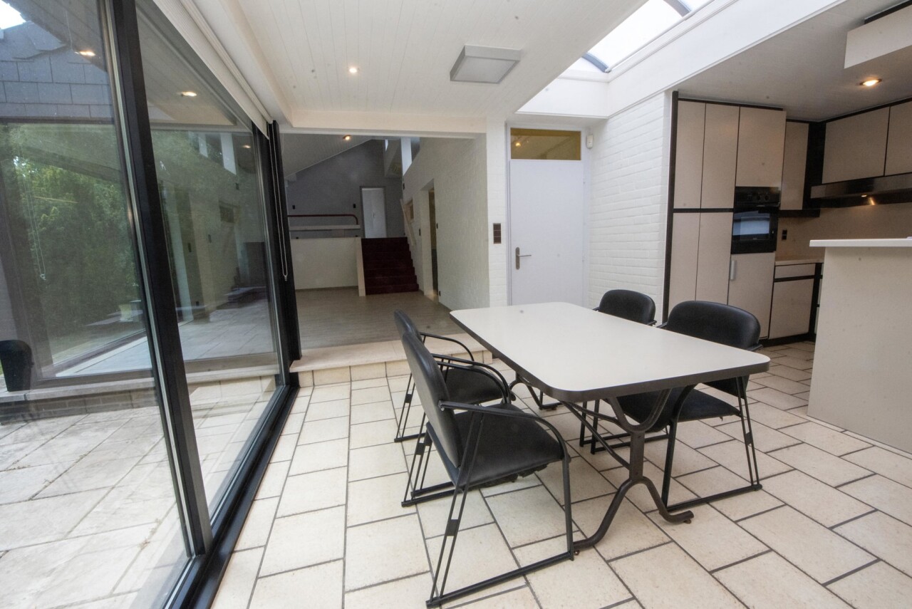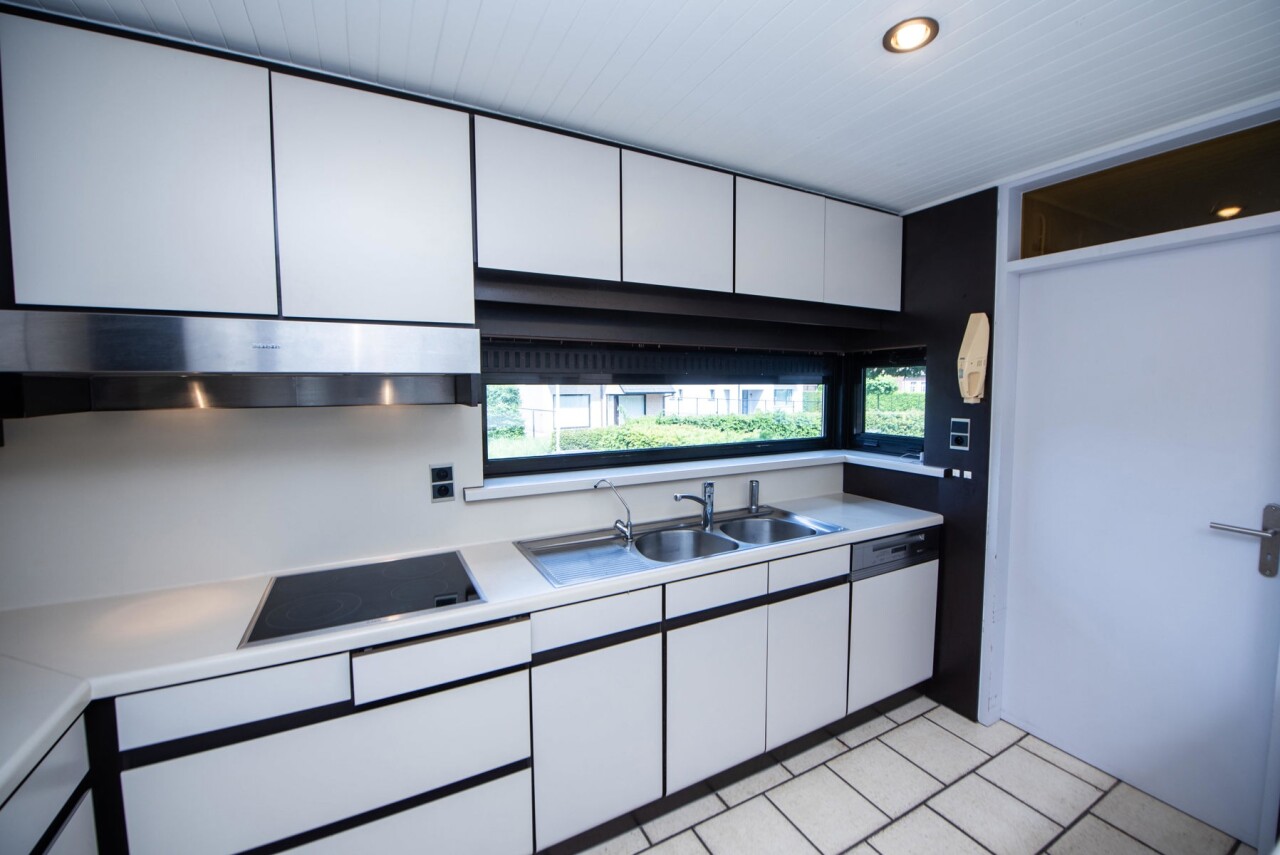 - Eerste verdieping: royale, lichtrijke inkomhal met apart gastentoilet, volledig uitgeruste keuken met berging.