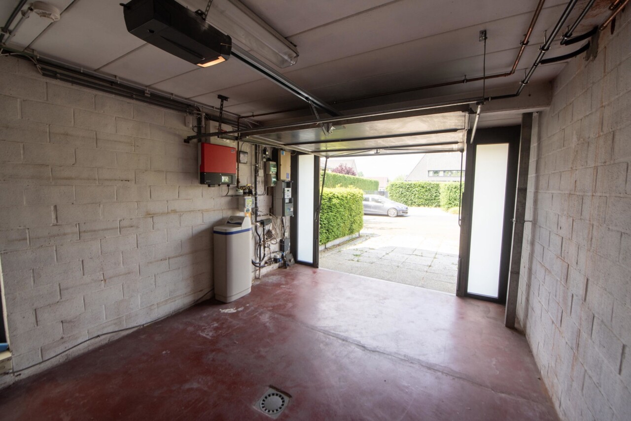 - Gelijkvloers: ruime inkom, grote inpandige garage, carport, twee volwaardige slaapkamers en een moderne badkamer.